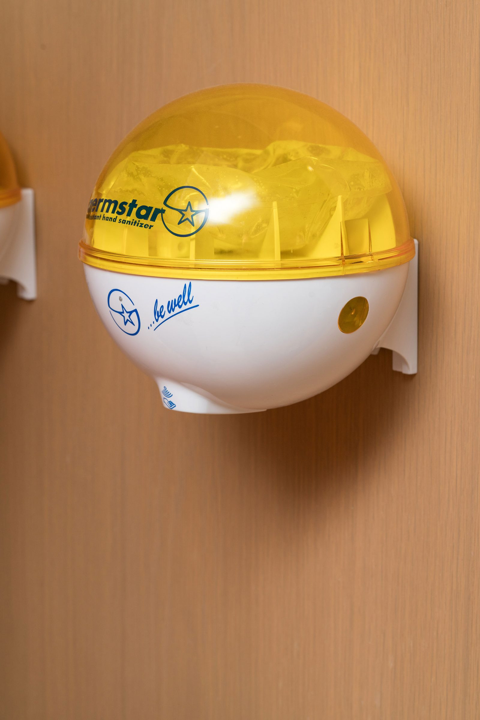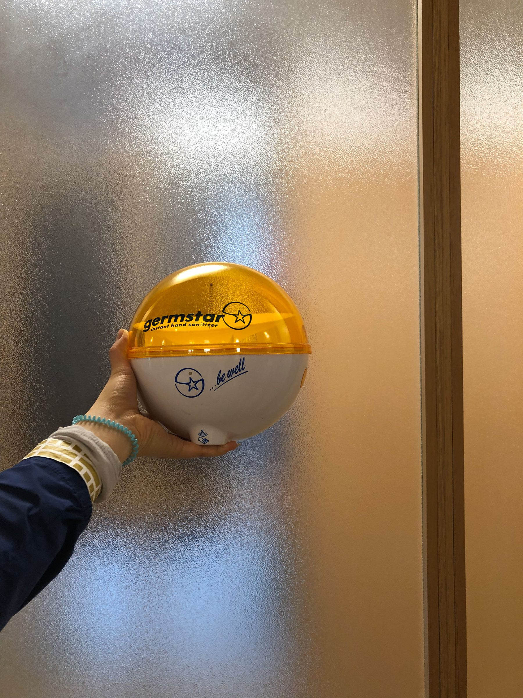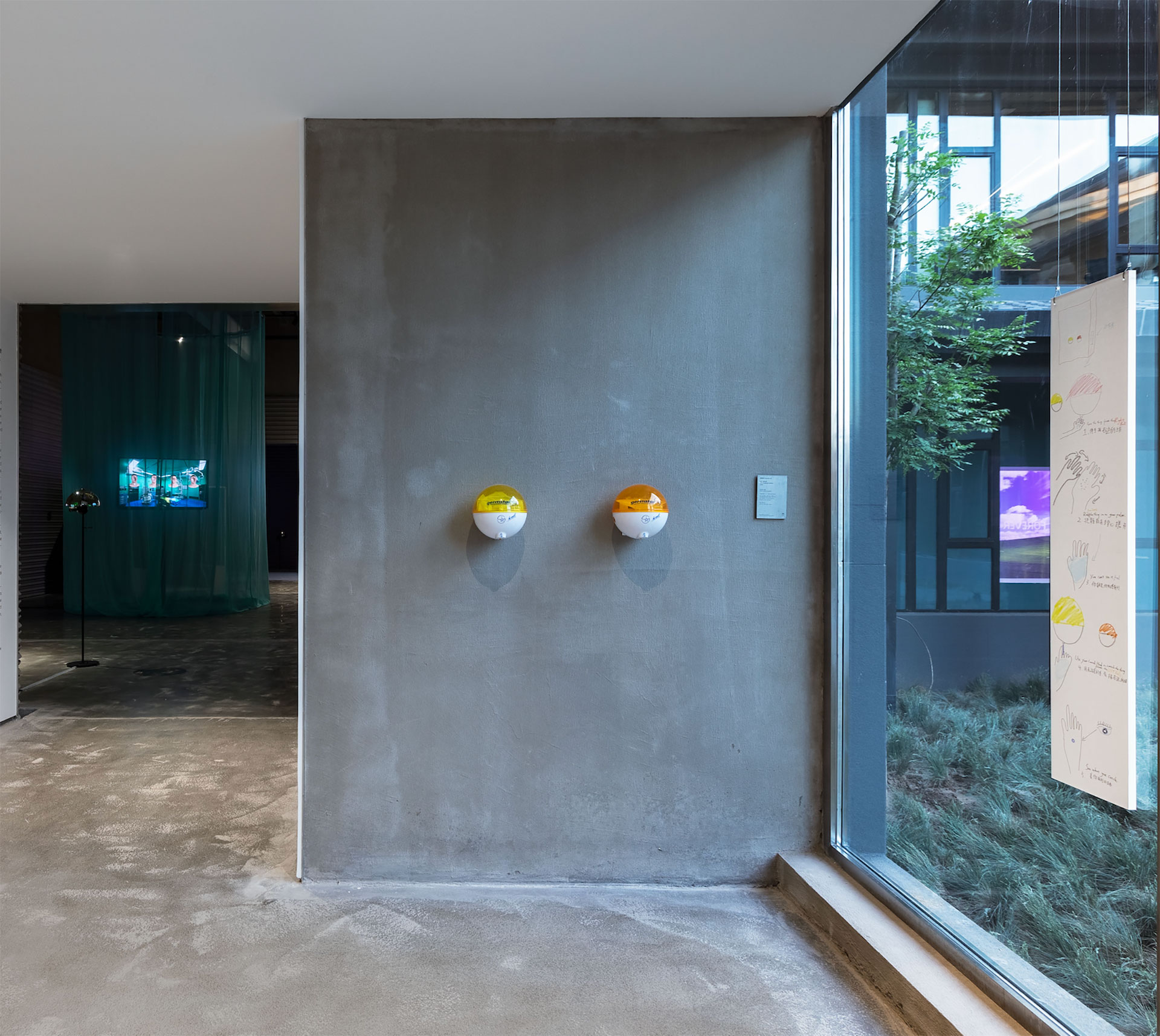 Hydrophobilizer enables one’s hands to become water-repellent like lotus leaves and transforms the familiar sensations of touching water into a marvelous and curious moment, similar to that of holding mercury. The installation consists of a two-step process, where the participants first receive the colorless and transparent aerogel particles (made from 99.6% air and 0.4% silicon, the lightest solid substance in the world!) from a modified hand sanitizer machine and rub over the hands as if they are washing their hands. Participants then go under another sphere machine to receive water drops and are astonished to find that the water droplets are rolling around their palms like pearls. The familiar act of washing one’s hands with water and sanitizing one’s hands is soon transformed into an unfamiliar moment. In redefining the familiar motions, the substance of water escapes its conventional role and materiality but discovers a new function and meaning. As the words ending with “-lizer” or “-tizer” often signify utility (such as “sanitizer” and “fertilizer”), the artist coins the title “Hydrophobilizer” from the word “hydrophobicity,” suggesting a sensorial experience seemingly void of utility.