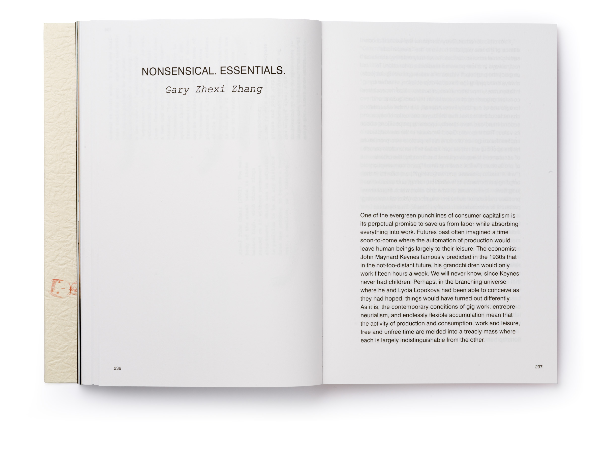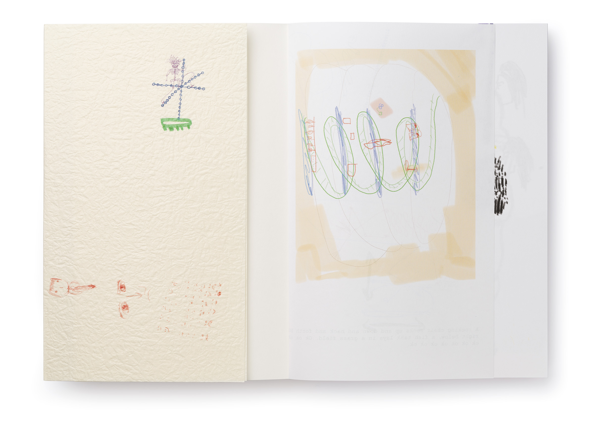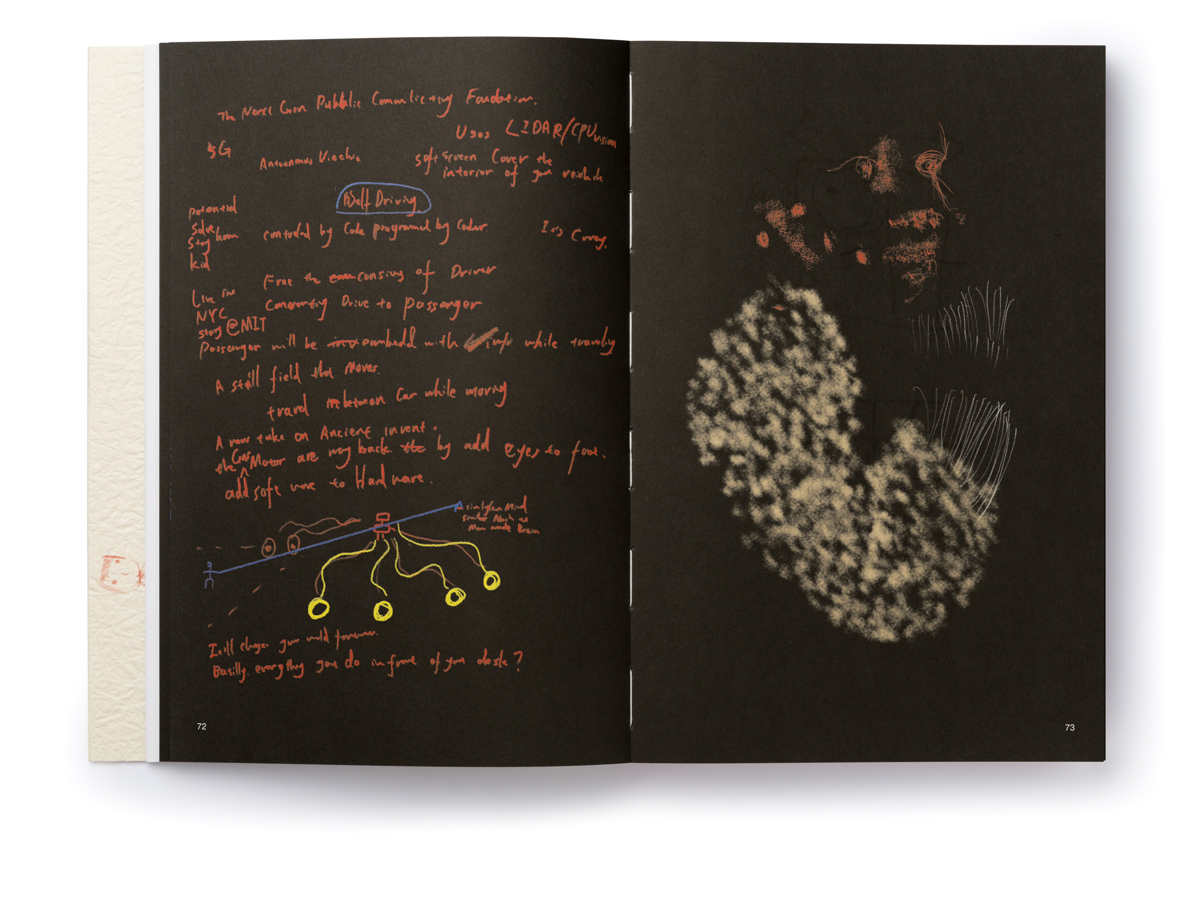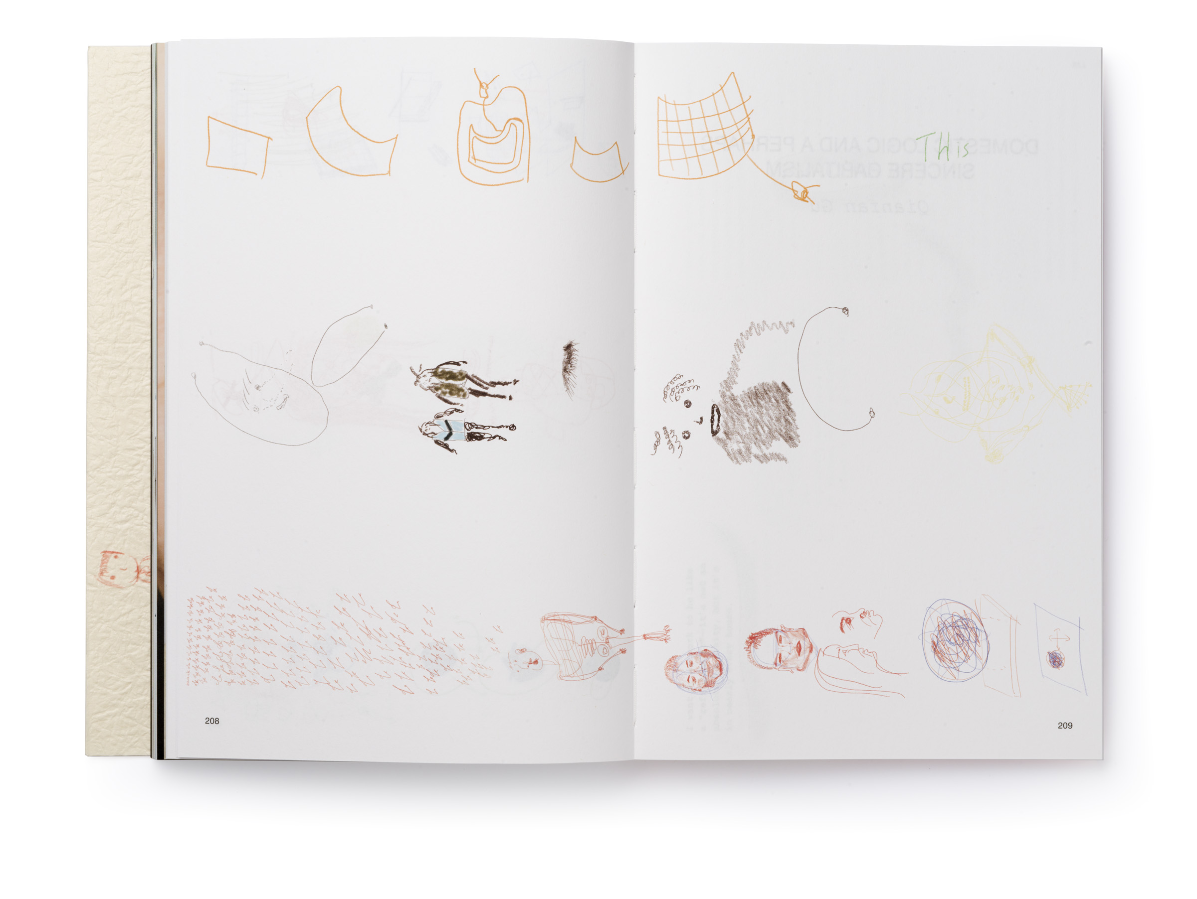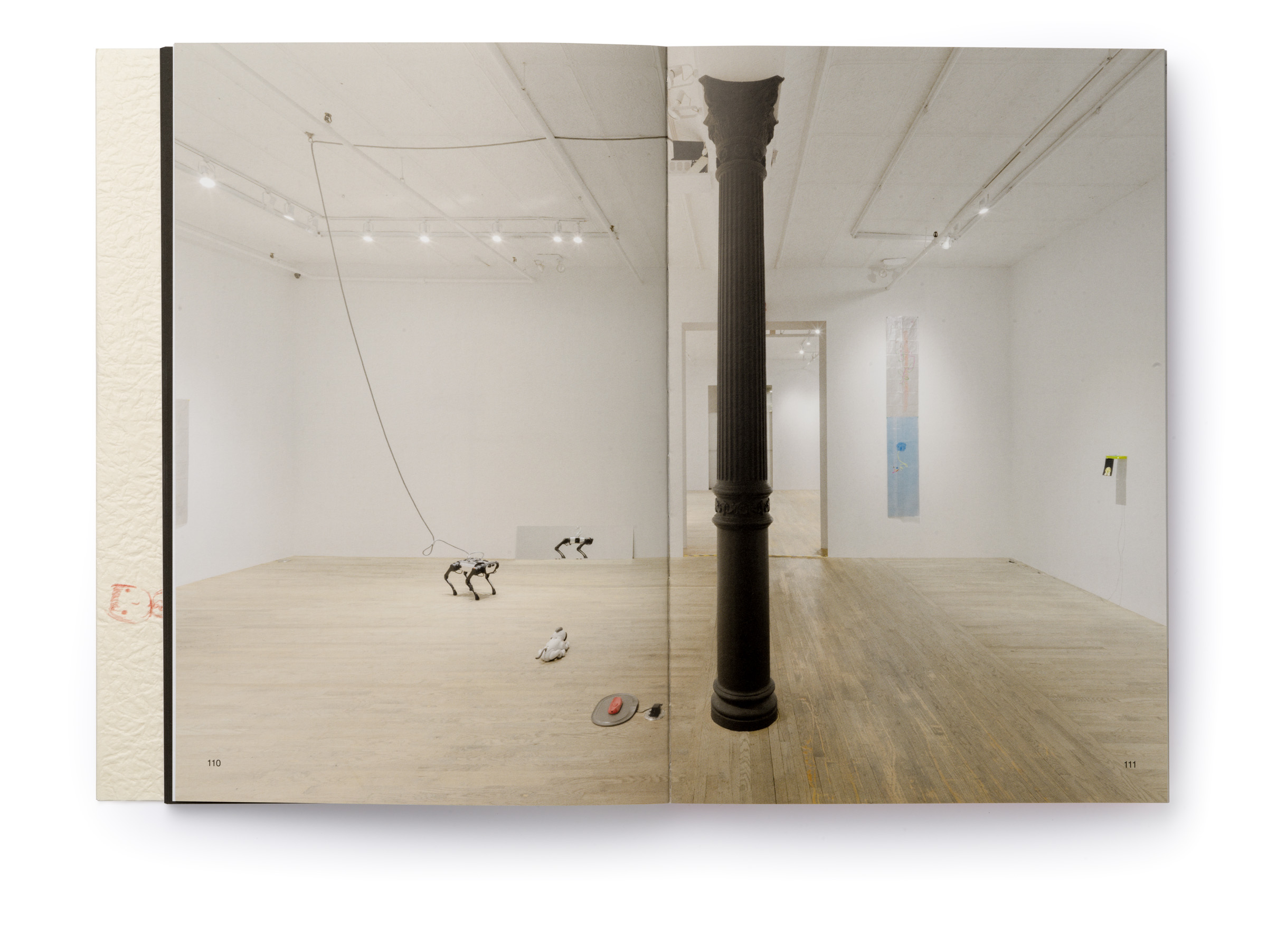 Warm Machine and Other Mirrorless Reflections is Chando Ao’s first monograph published and distributed internationally. The book is a proper representation of his mental state that he describes as a navigation between two extremes: “on the one hand, (he focuses on) his solo endeavors in paintings and drawings. On the other hand, he builds a complex and open system, which needs to be accomplished in conjunction with the external world, which includes robots, flora and fauna, software, food, machinery, exceptionally unique materials, and everyday consumer goods.” There is a dissonance between some of the (big) tech he wishes to use in his work and the concept sketches he makes that put these technologies up to use (in very playful ways). The book delves deeper through an interview featuring interwoven voices, including Gu Qianfan, Chando Ao, and Yve Yang (when reading it we wonder who’s who). Gary Zhexi Zhang was also invited to finally complement the book with a contribution in the form of an essay that attempts to clarify some of his understandings of the artist’s work and what it all means in present times. The book was printed in China using offset printing technology. It presents many of Chando’s iPad illustrations (single illustrations and stripes) and also photographs of his art installations in full color. The cover sleeve was printed on Japanese stock. The book binding is a lay-flat sewn and glued soft cover.